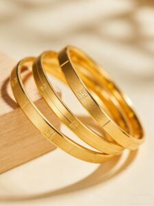 Bangles are rigid bracelets that maintain their circular shape. They can be slipped over the hand or opened with a hinge.